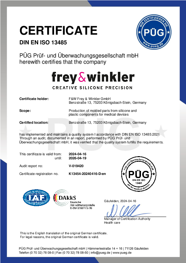 Our sites are certified to DIN ISO 13485 and DIN ISO 9001 standards.